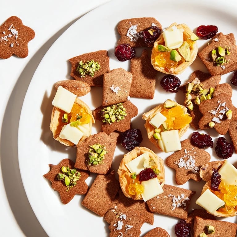 Take care when rolling out the gingerbread dough to an even 1/4-inch thickness for consistent baking. Use festive cookie cutters to add charm and character to your mini cookies. To achieve smooth white chocolate bark, melt gently to avoid burning. For tartlets, ensure the puff pastry is well chilled before cutting to make handling easier.
