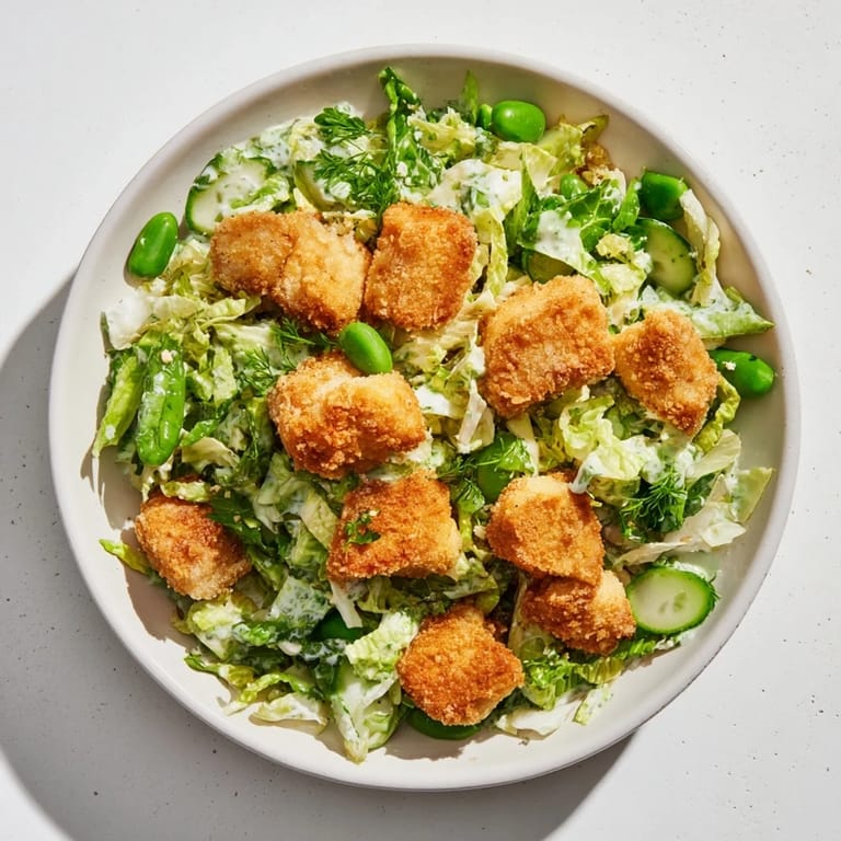 Save I discovered this salad on a Tuesday afternoon when my air fryer arrived and I was determined to use it for something beyond the obvious. While scrolling through my phone at lunch, I stumbled on a picture of golden nuggets glistening over bright green vegetables, and something clicked—why was I treating nuggets like a guilty pleasure when they could be the hero of a real meal? That evening, I threw together what I had in the fridge and made the first version, tossing warm nuggets into a shower of fresh herbs and creamy dressing. It tasted like comfort and brightness at the same time, and I've been making it ever since.
