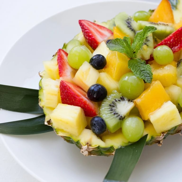 Save A vibrant and refreshing fruit salad served in a pineapple boat, perfect for summer gatherings or as a show-stopping brunch centerpiece.
