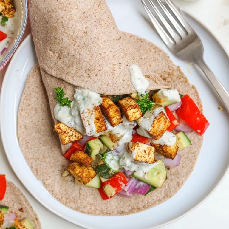 - Fill each wrap or pita with roasted tofu and vegetables. Drizzle with tahini-yogurt sauce. Sprinkle with fresh parsley.