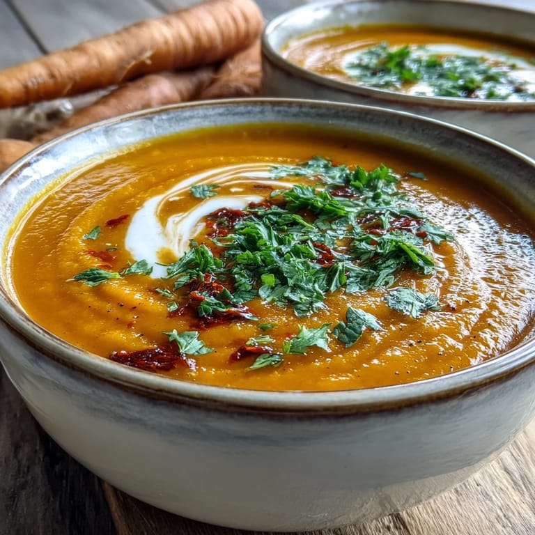 You might notice this soup has no cream, no coconut milk, no dairy of any kind, yet it tastes genuinely silky and satisfying. The magic comes from the celeriac and carrots themselves—when blended completely, their natural starches and sugars create that creamy texture you're tasting. This is why an immersion blender that really incorporates air and breaks down the vegetables thoroughly is worth the investment; it's the difference between a thin soup and something that feels indulgent.