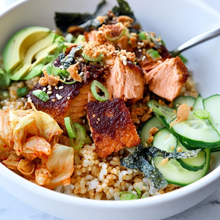 I first made this crispy salmon rice bowl on a busy evening looking for something both comforting and fresh. The combination of crunchy rice and tender salmon always brings me back to my favorite homemade fusion dinners.