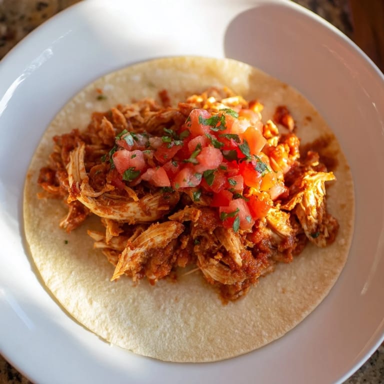 Tender, flavorful shredded chicken slow-cooked with spices, served in warm tortillas for a budget-friendly, crowd-pleasing meal.