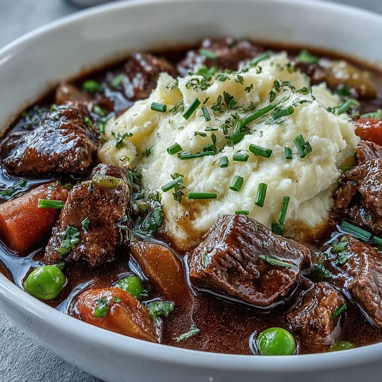 The trick is that removing the potatoes and replacing them with cauliflower doesn't make the dish lighter in soul, only in consequence. The cauliflower mash soaks up the stew's rich broth just like potatoes would, but it brings a subtle earthiness that complements rather than competes with the beef. You're not sacrificing flavor for nutrition, you're just being smarter about where your calories come from.